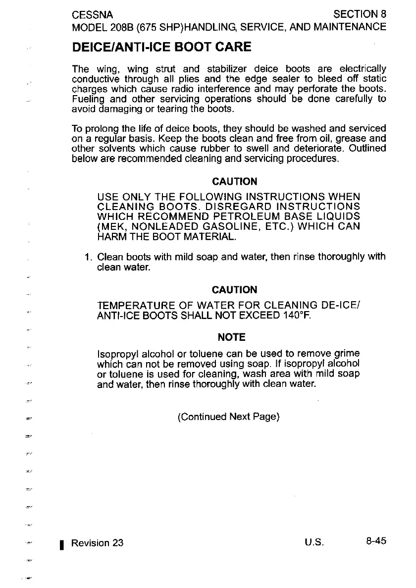 ANTI-ICE BOOTS SHALL NOT EXCEED 140°F.