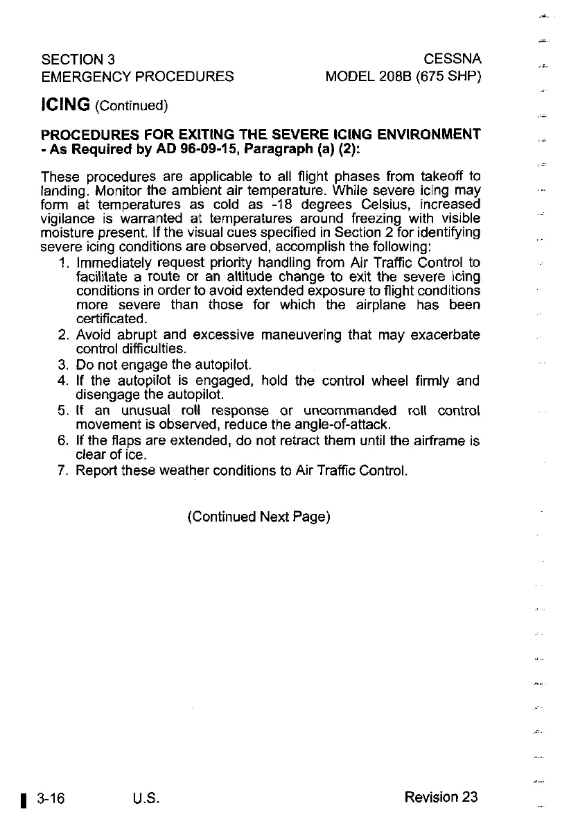 PROCEDURES FOR EXITING THE SEVERE ICING ENVIRONMENT