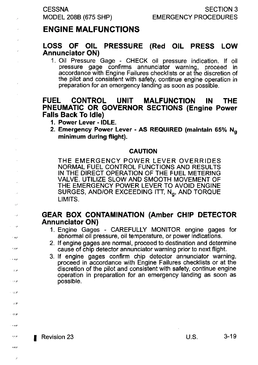 THE EMERGENCY POWER LEVER TO AVOID ENGINE
