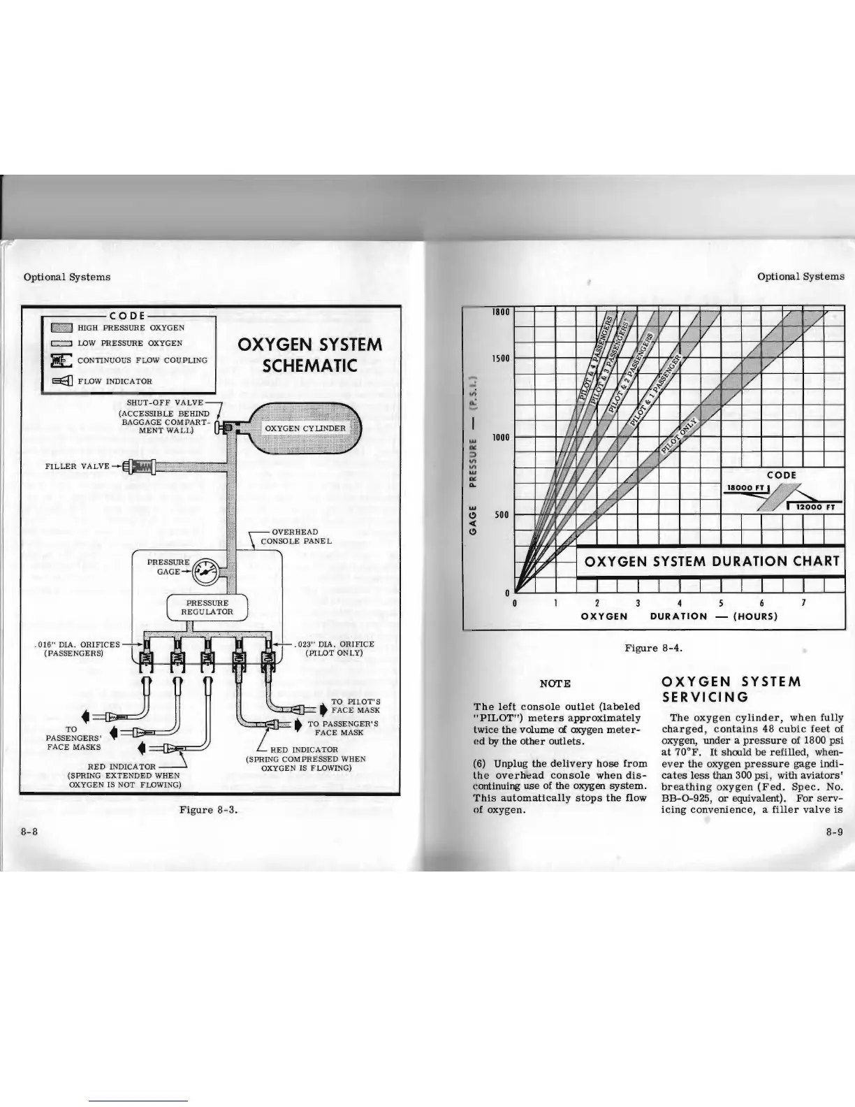 Cessna 210B - Oxygen System Servicing; Oxygen System Schematic; Oxygen System Duration Chart