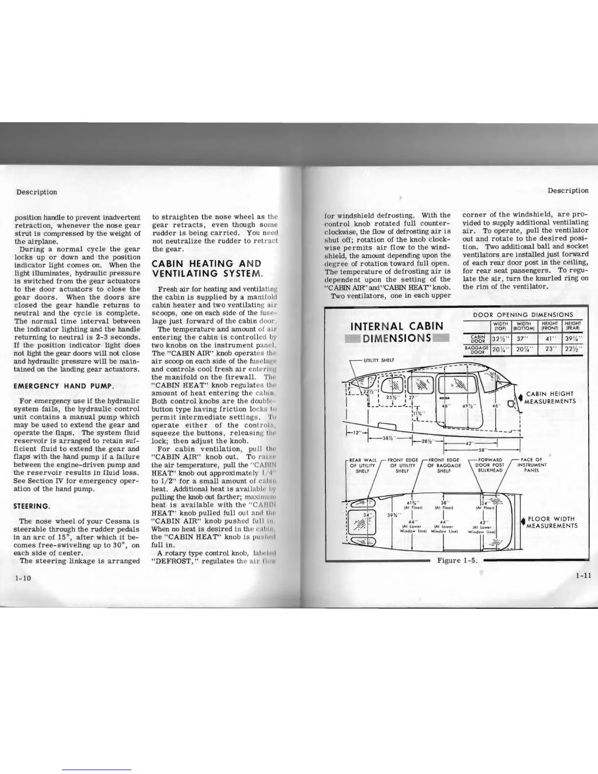 Cessna 210B - Internal Cabin Dimensions; Steering; Cabin Heating and Ventilatig System; Emergency Hand Pump