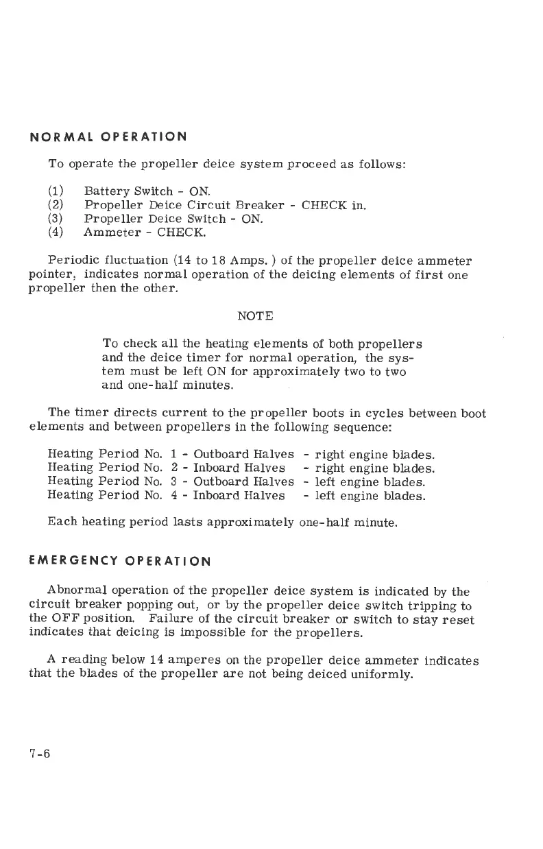 Cessna 402B 1973 - Propeller Deice System; Propeller Deice: Normal Operation