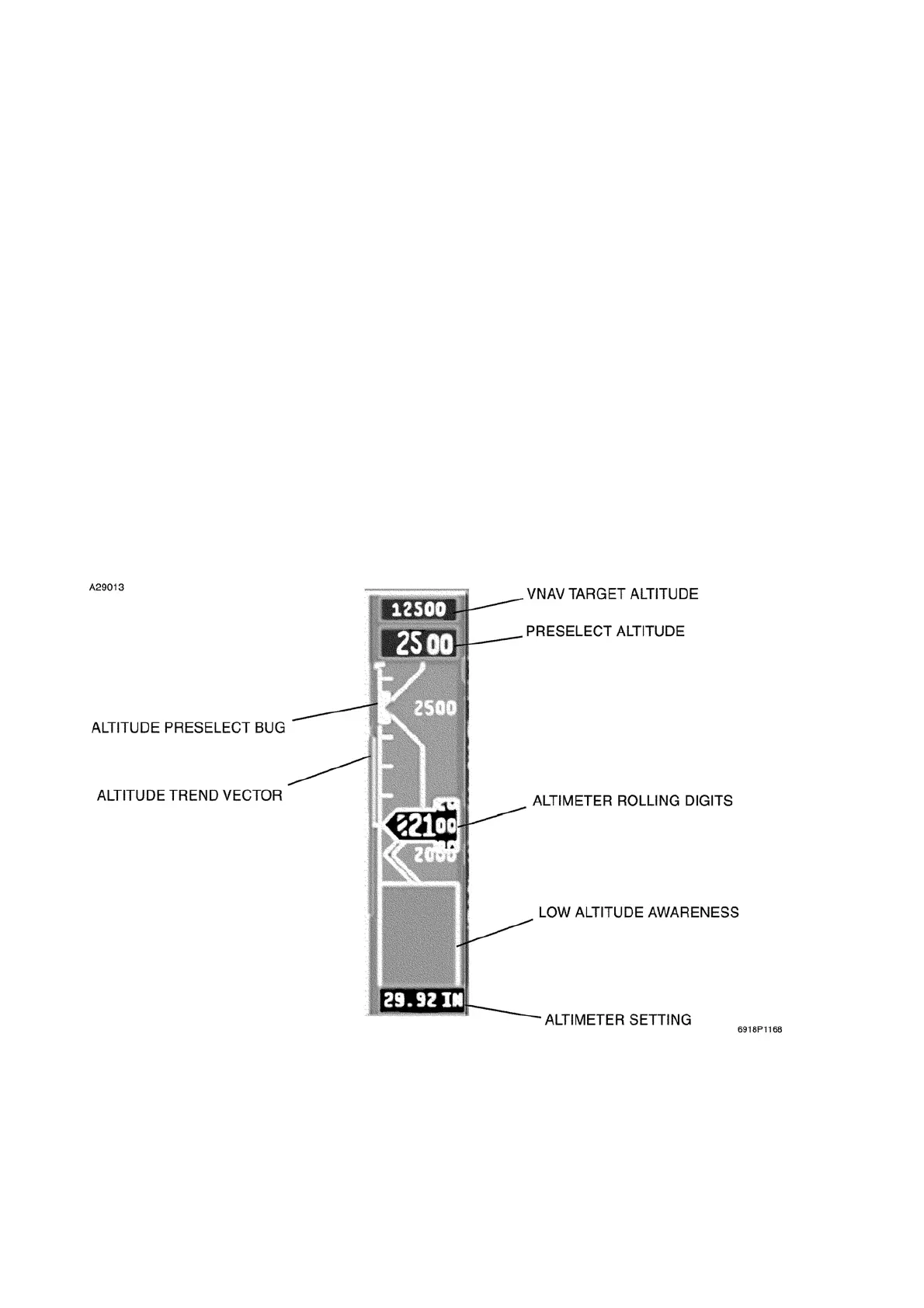 An altitude trend vector is displayed on the left edge of the altitude tape and provides an indication of