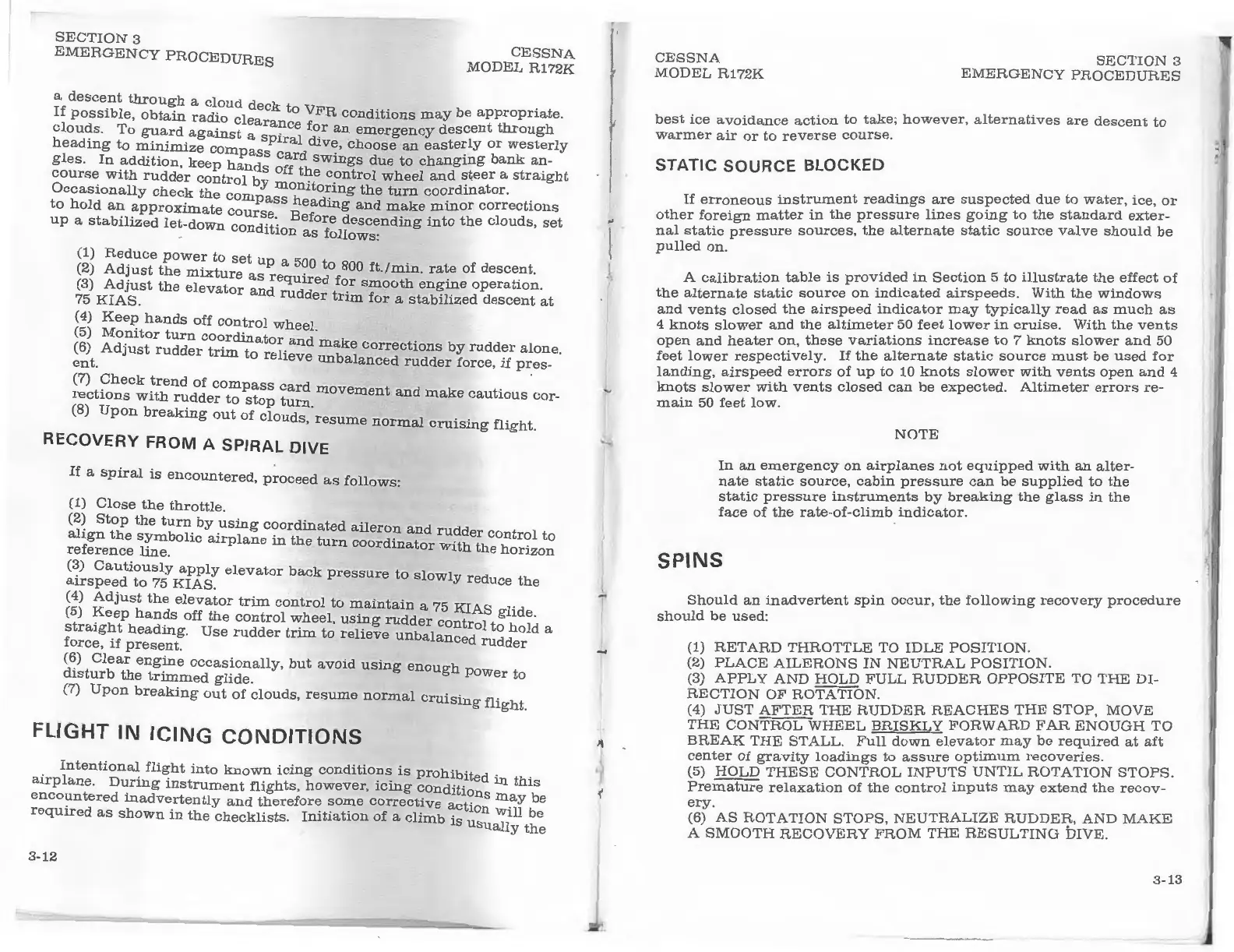 Cessna R172K - RECOVERY FROM A SPIRAL DIVE; SPINS
