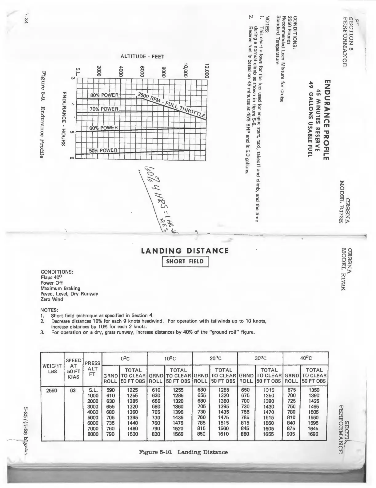 Cessna R172K - ENDURANCE PROFILE; LANDING DISTANCE