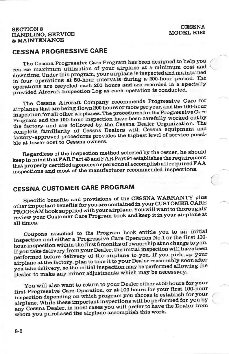 Cessna R182 - Cessna Progressive Care; Cessna Customer Care Program