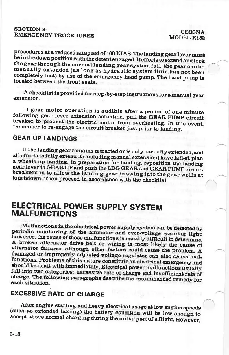 Cessna R182 - Gear up Landing; Electrical Power Supply System Malfirnctibns; Excessive Rate of Charge