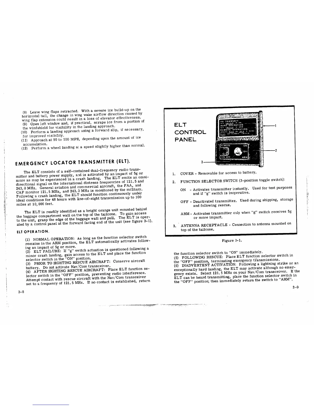 Cessna Skywagon 185 - Emergency Locator Transmitter; ELT Control Panel
