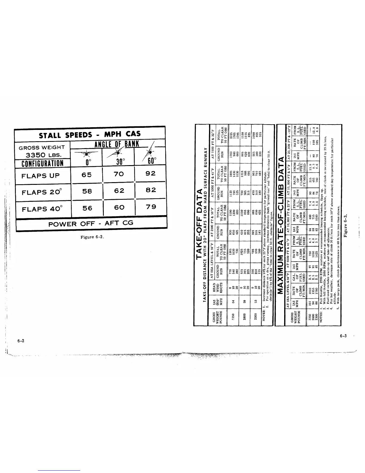Cessna Skywagon 185 - Stall Speeds - MPH CAS; Take-Off Data; Maximum Rate-Of-Climb Data
