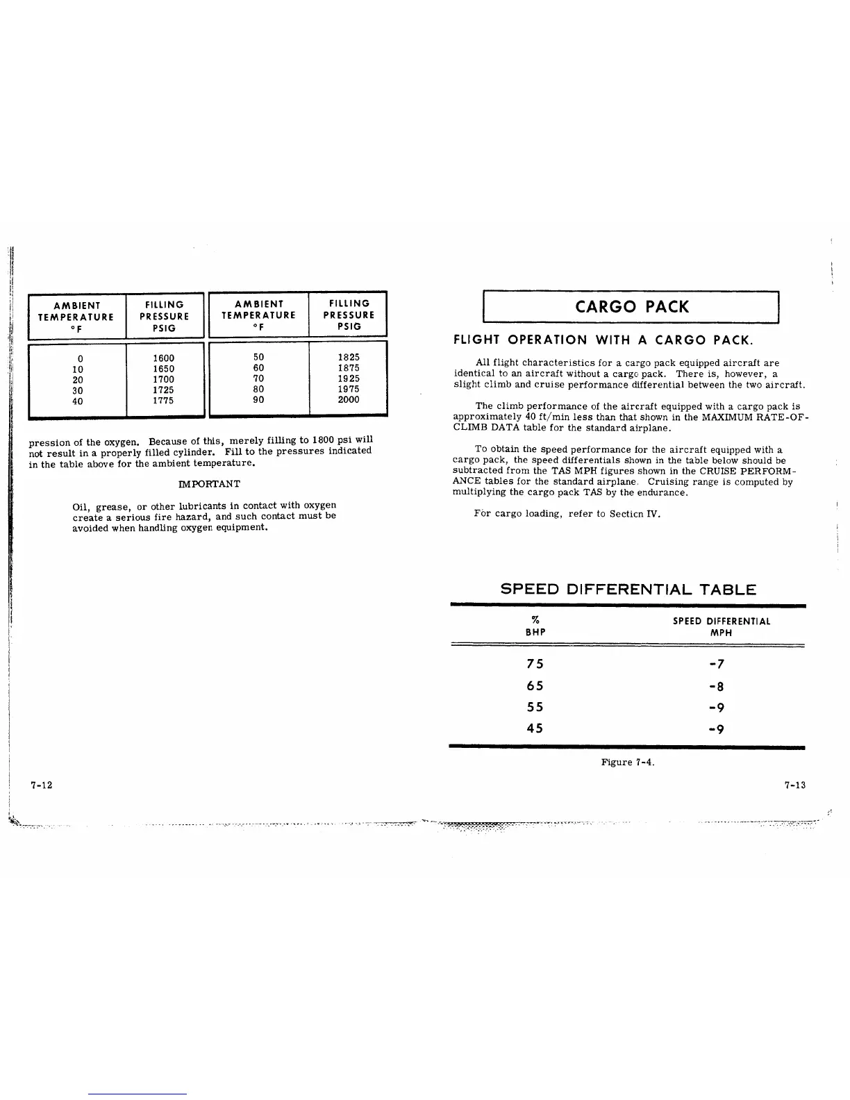 Cessna Skywagon 185 - Flight Operation with a Cargo Pack; Speed Differential Table