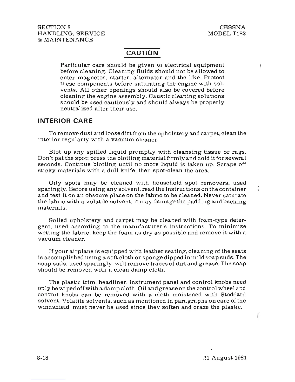 Cessna T182 1982 - INTERIOR CARE
