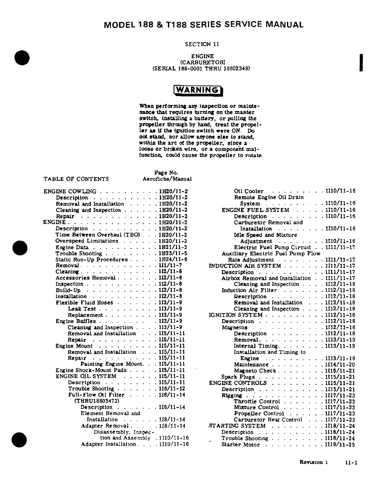Cessna T188C - Warning; Table of Contents
