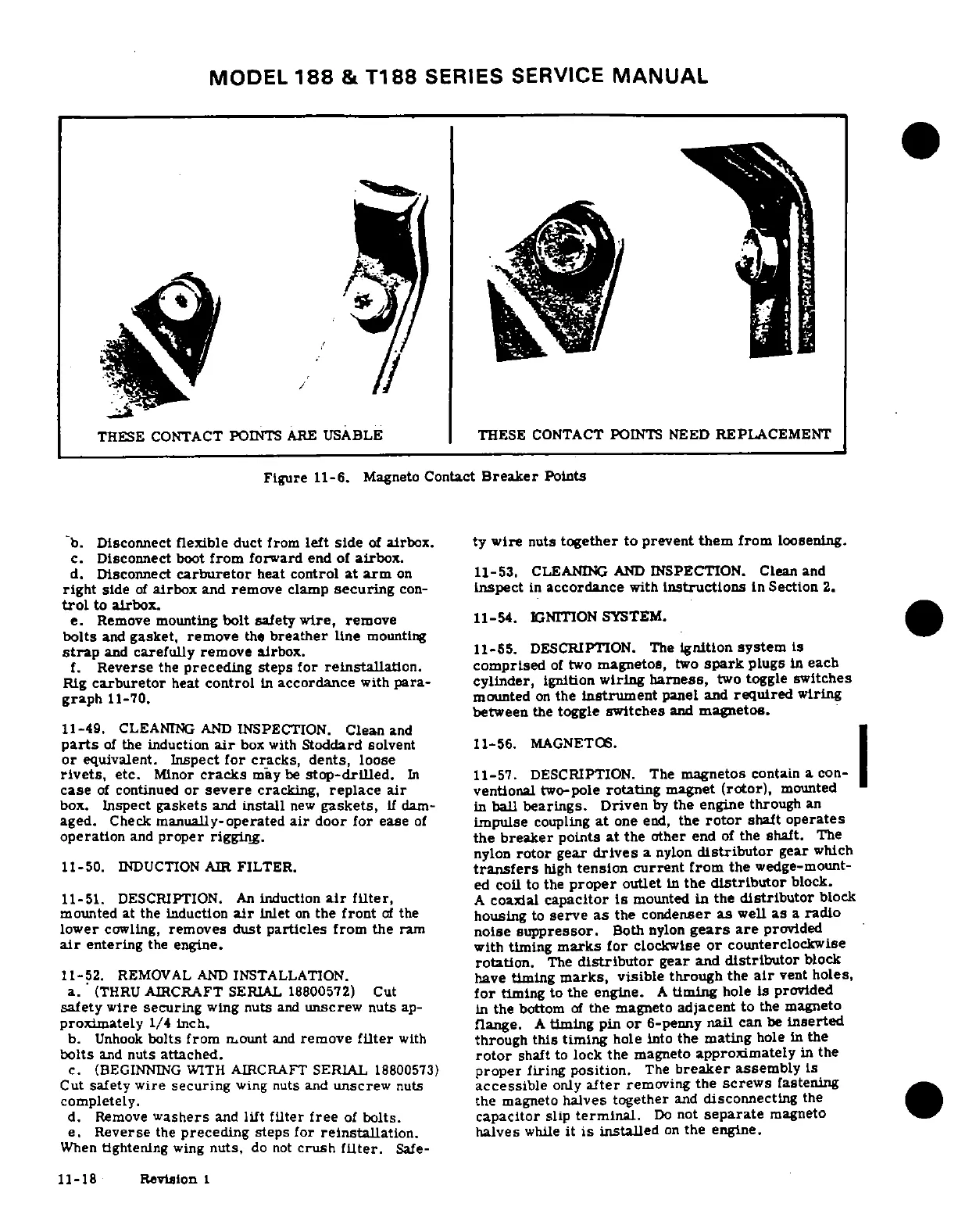 Cessna T188C - Cleaning and Inspection; 11-50. Induction Air Filter; 11-52. Removal and Installation; Description