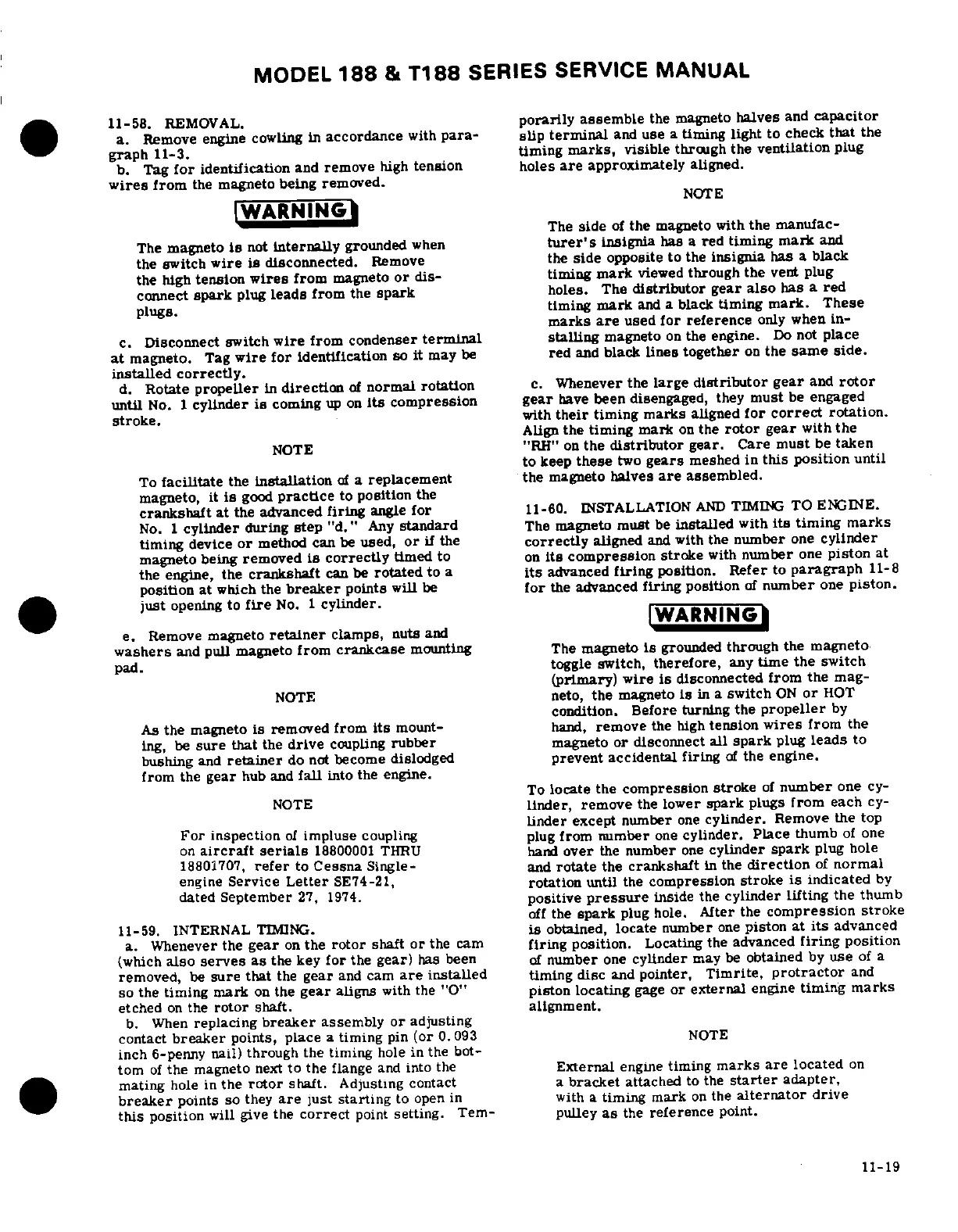 Cessna T188C - 11-59. Internal Timing; 11-60. Installation and Timing to Engine; Removal