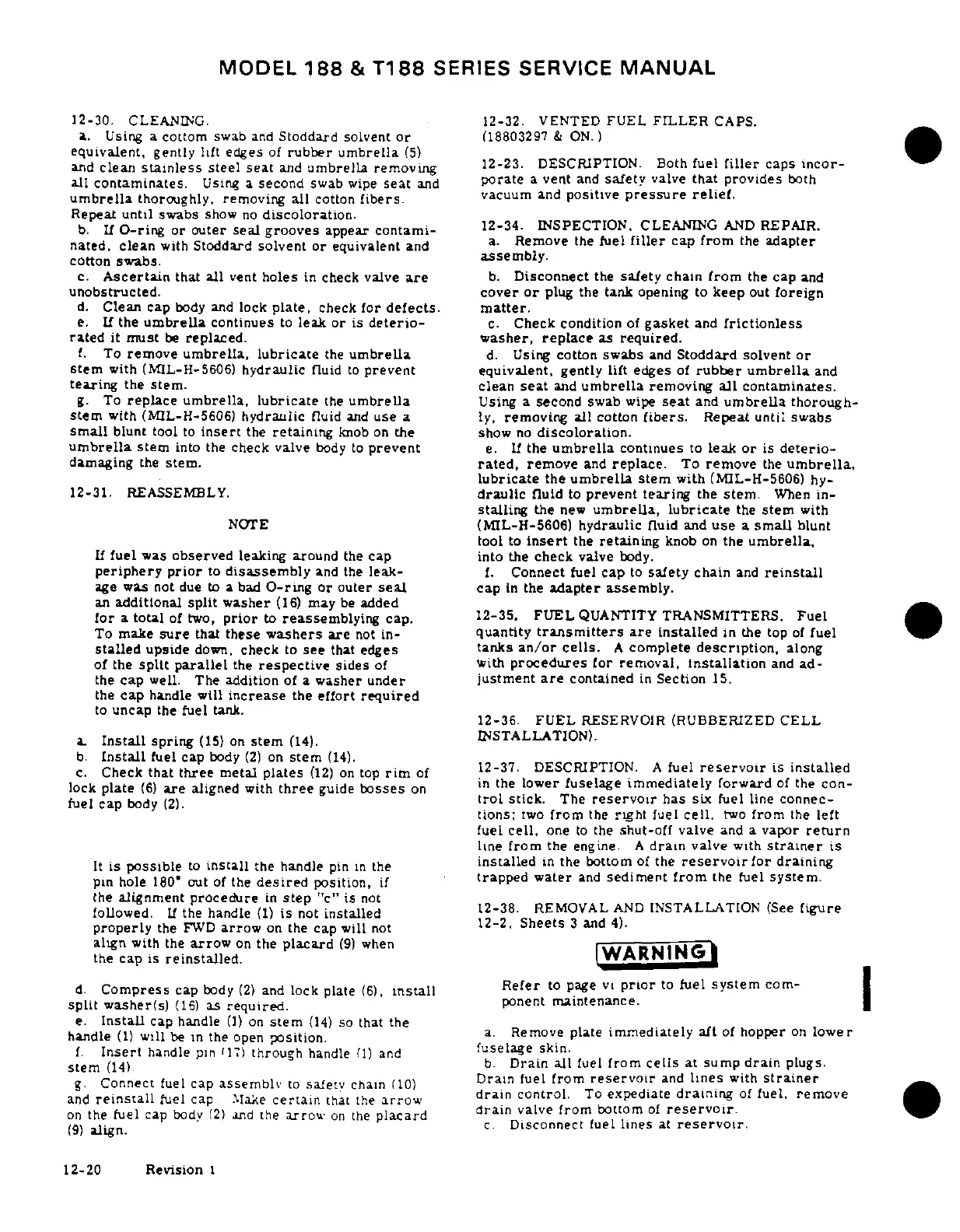 Cessna T188C - Reassembly; Cleaning; Fuel Quantity Transmitters; Fuel Reservoir