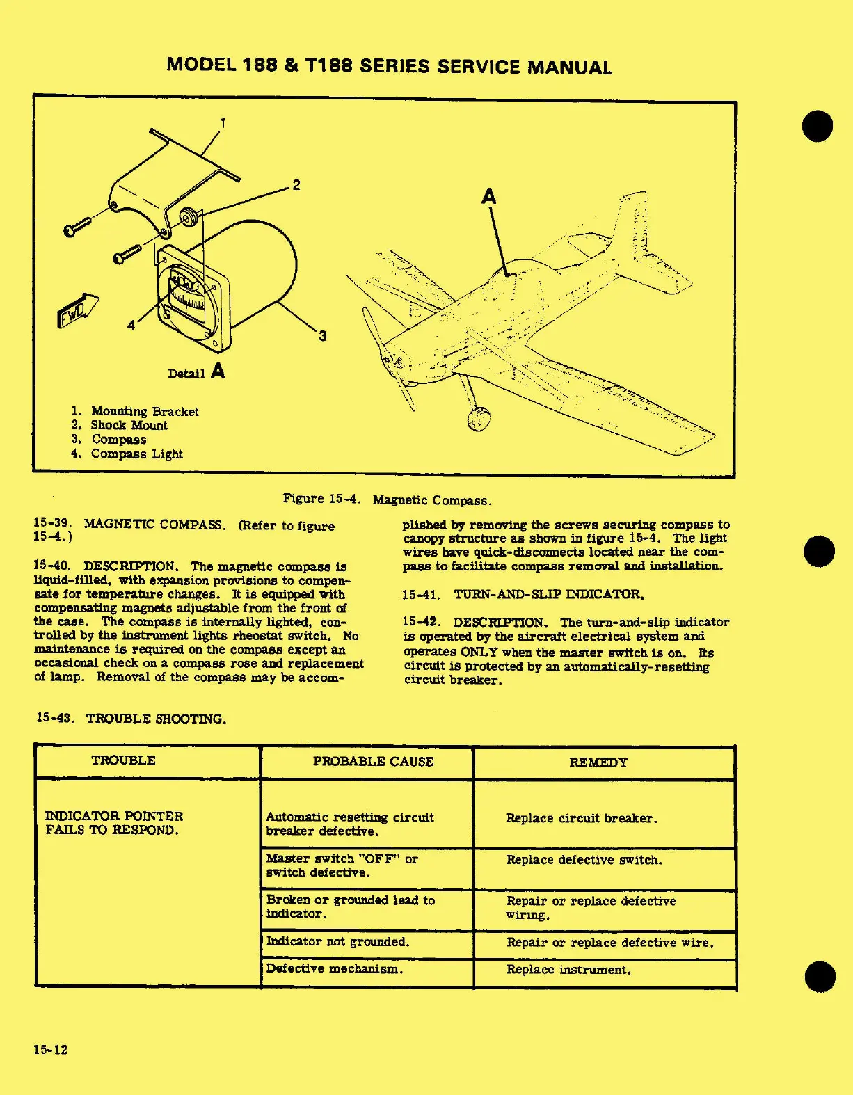 Cessna T188C - Trouble Shooting (Calibration); 15-39. Magnetic Compass; Description; Turn and Slip Indicator