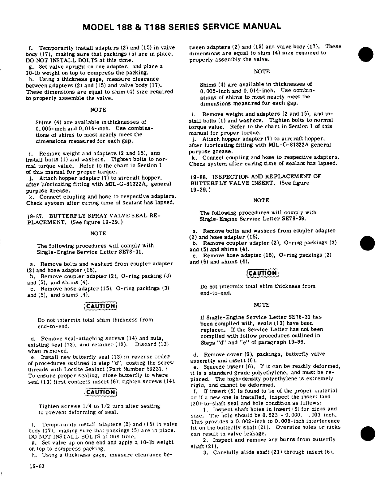 Cessna T188C - 19-88. Inspection and Replacement of; Butterfly Valve Insert