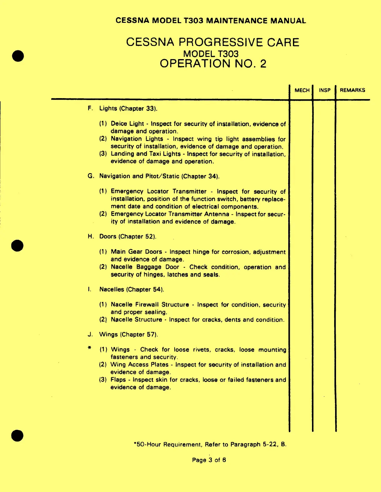 Cessna T303 - F. Lights (Chapter 33).; G. Navigation and Pitot;Static (Chapter 34).; H. Doors (Chapter 52).; I. Nacelles (Chapter 54).