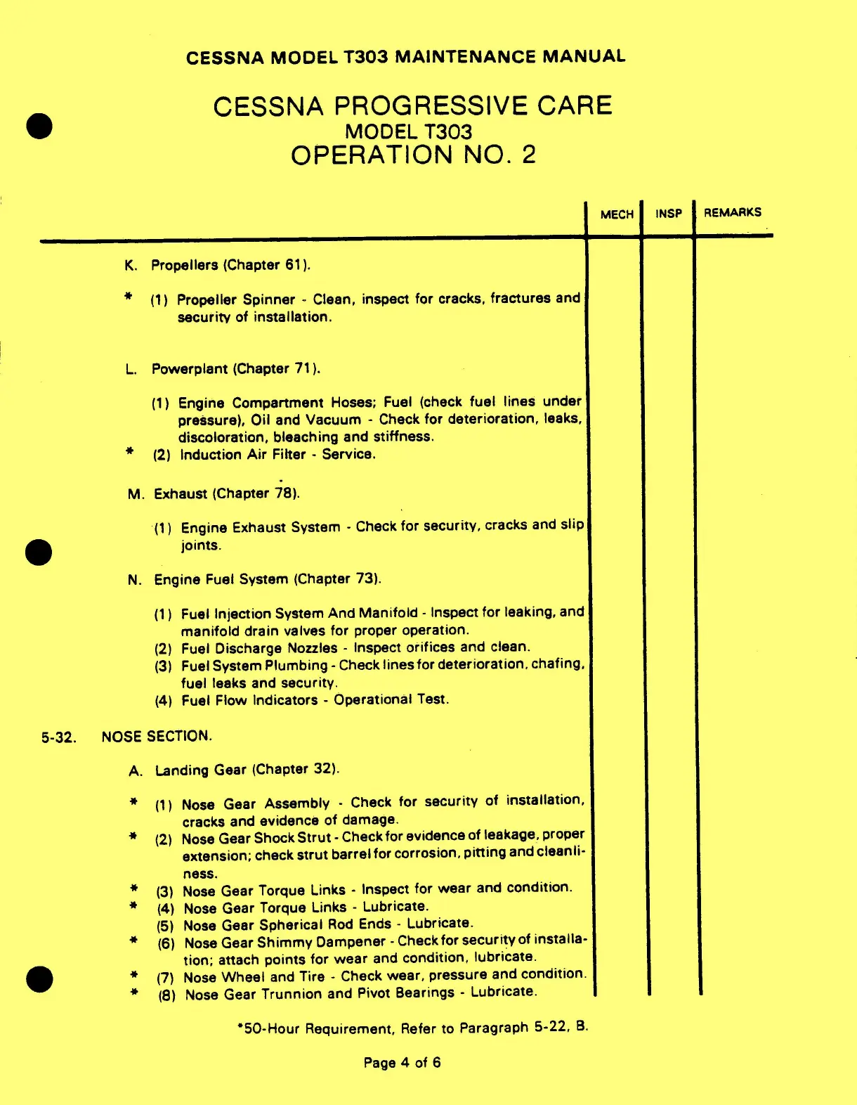 Cessna T303 - K. Propellers (Chapter 61).; L. Powerplant (Chapter 71).; M. Exhaust (Chapter 78).; N. Engine Fuel System (Chapter 73).