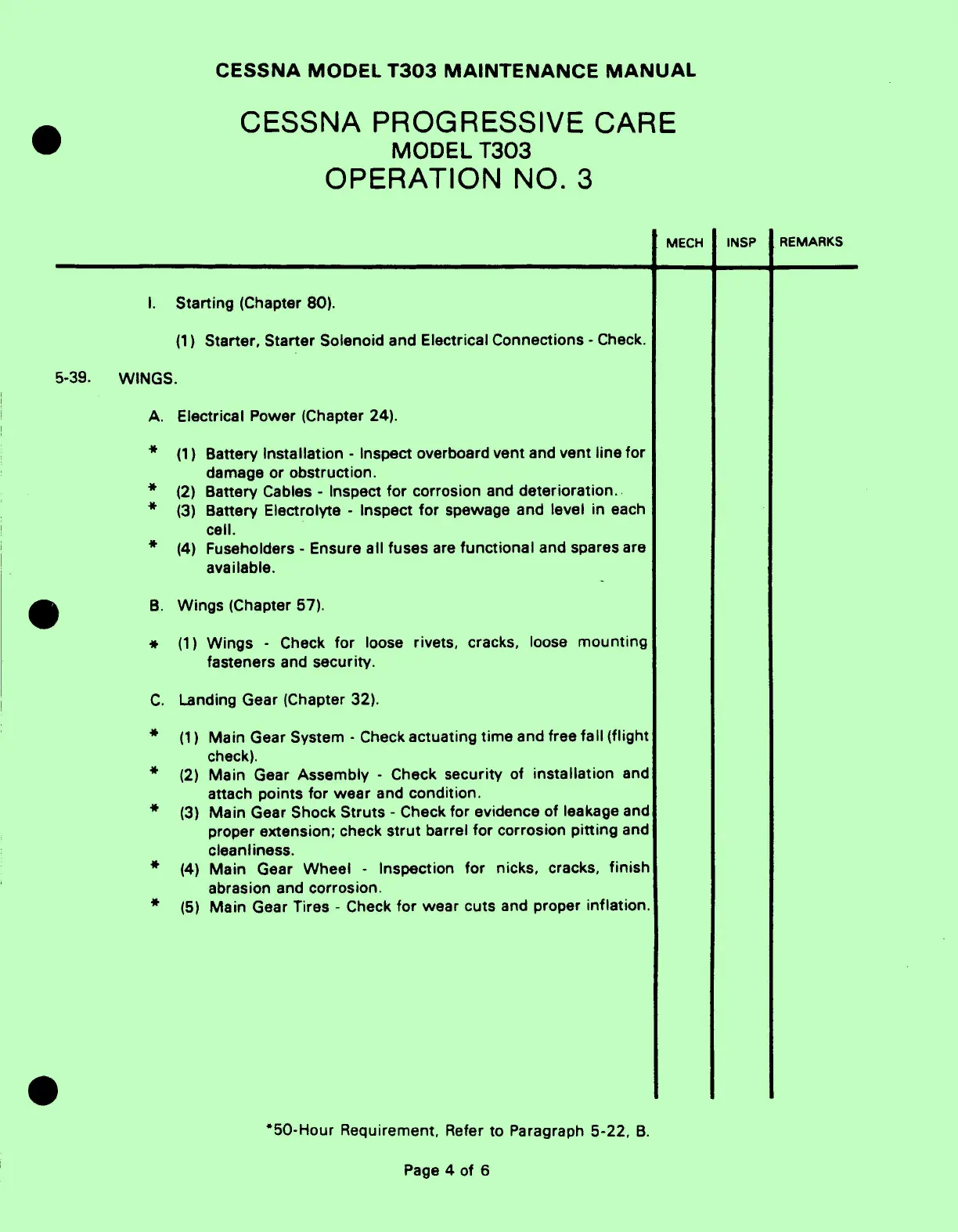 Cessna T303 - 5-39. WINGS.; A. Electrical Power (Chapter 24).; B. Wings (Chapter 57).; C. Landing Gear (Chapter 32).