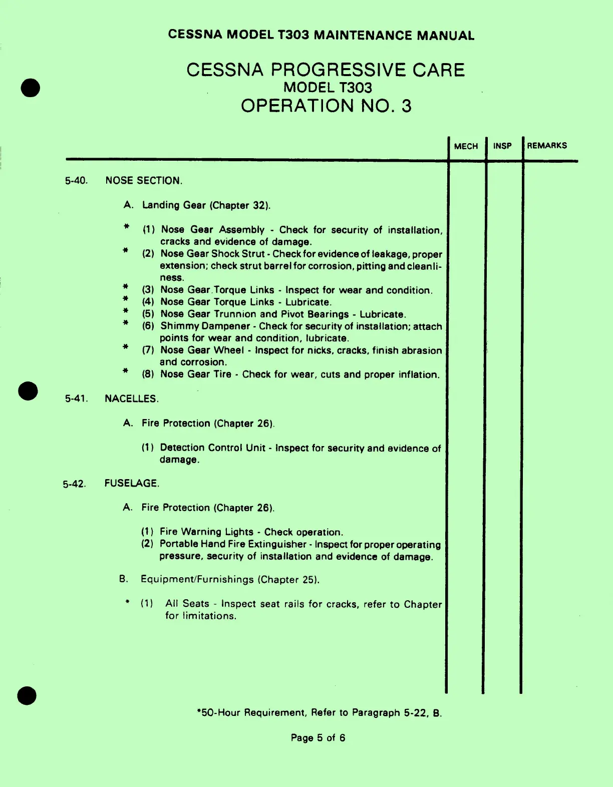 Cessna T303 - 5-40. NOSE SECTION.; A. Landing Gear (Chapter 32).; 5-41. NACELLES.; A. Fire Protection (Chapter 26).