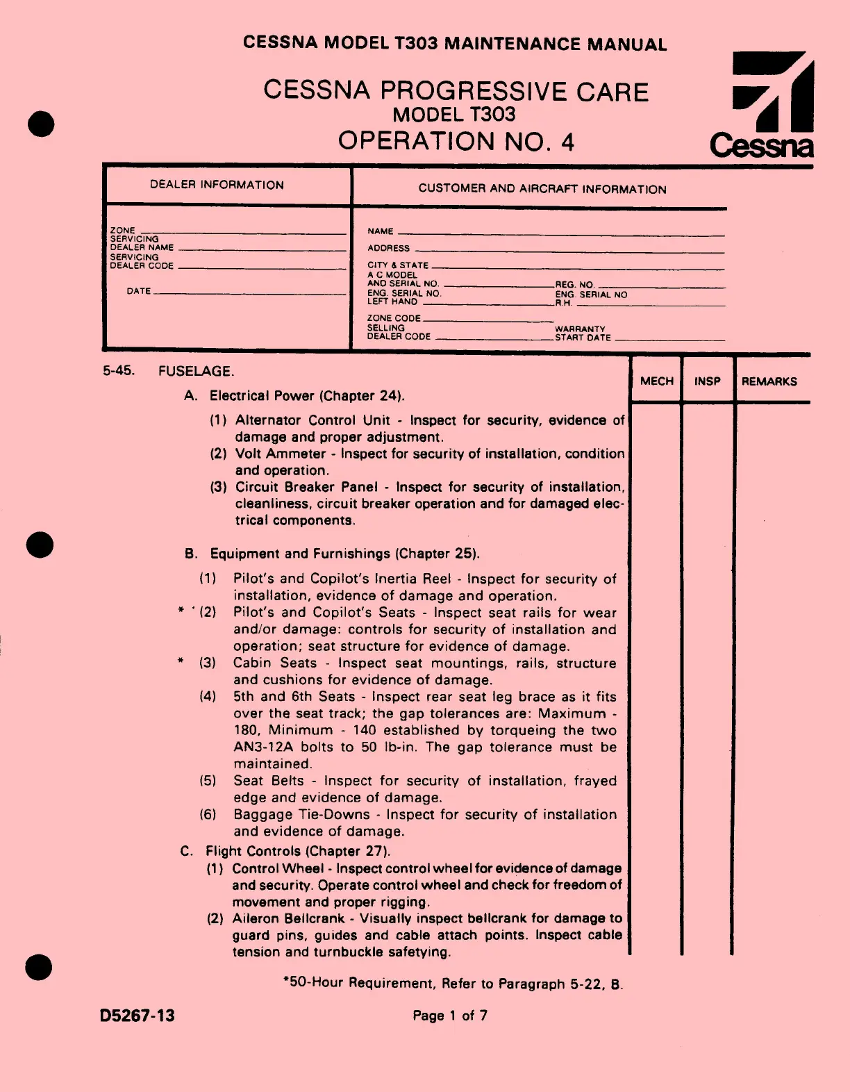 Cessna T303 - 5-45. FUSELAGE.; A. Electrical Power (Chapter 24).; B. Equipment and Furnishings (Chapter 25).; C. Flight Controls (Chapter 27).