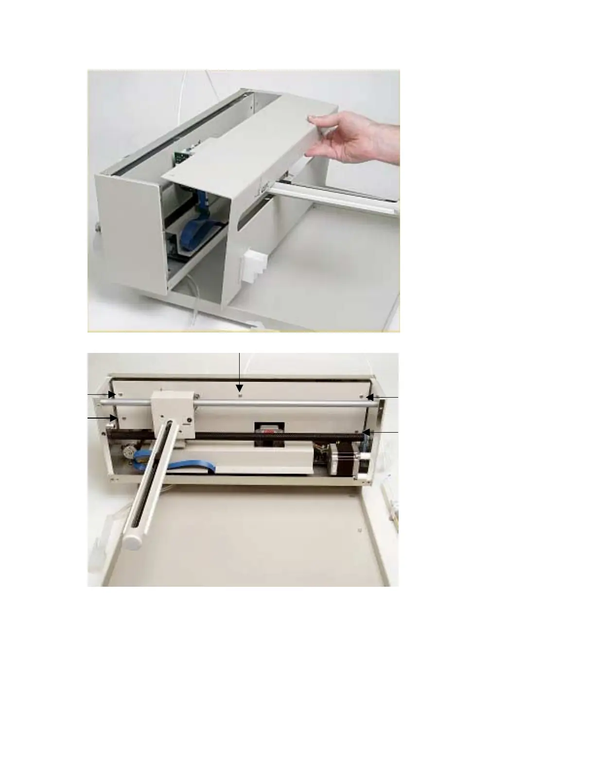 8. The five screws that hold the inner shield will have to be removed. Move the Y-axis