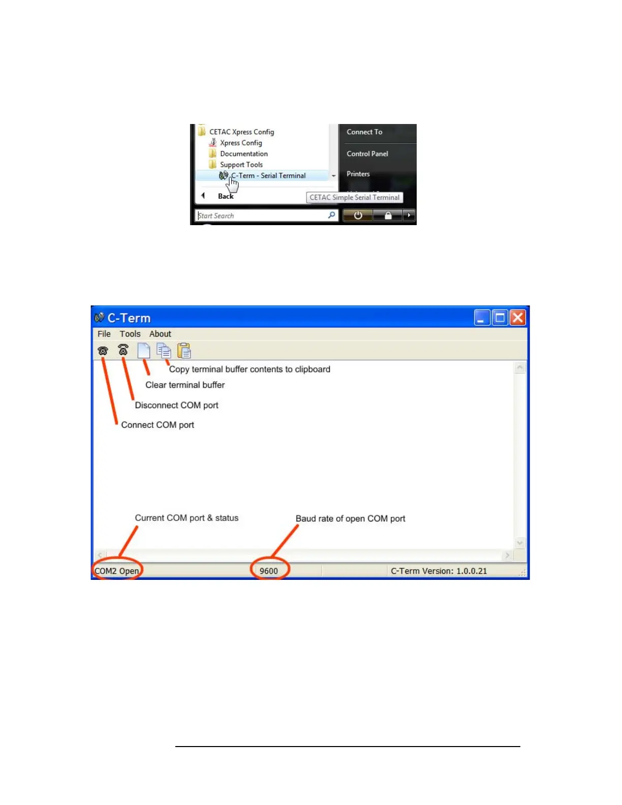 2 On the Start Menu, click All Programs, then CETAC Xpress Config, then Support