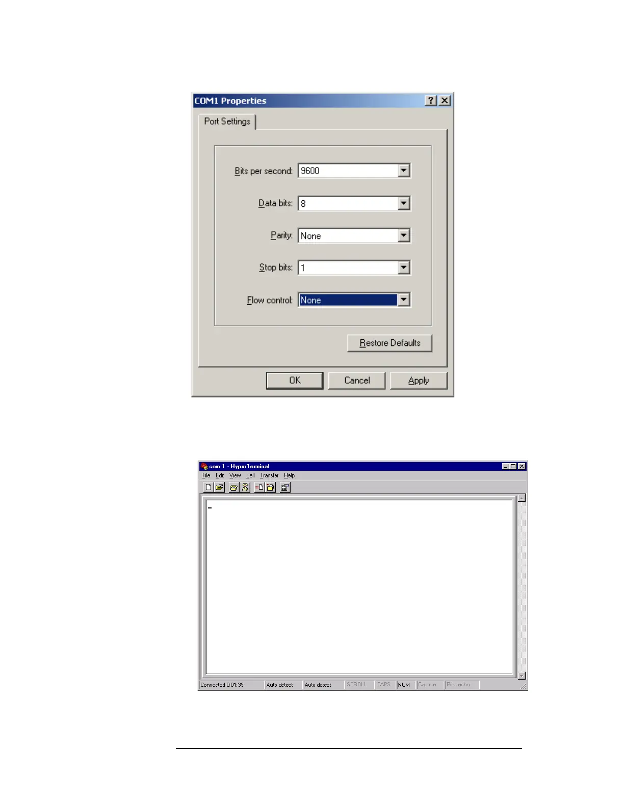 Figure 13-9 “Com 1 Hyperterminal” Window