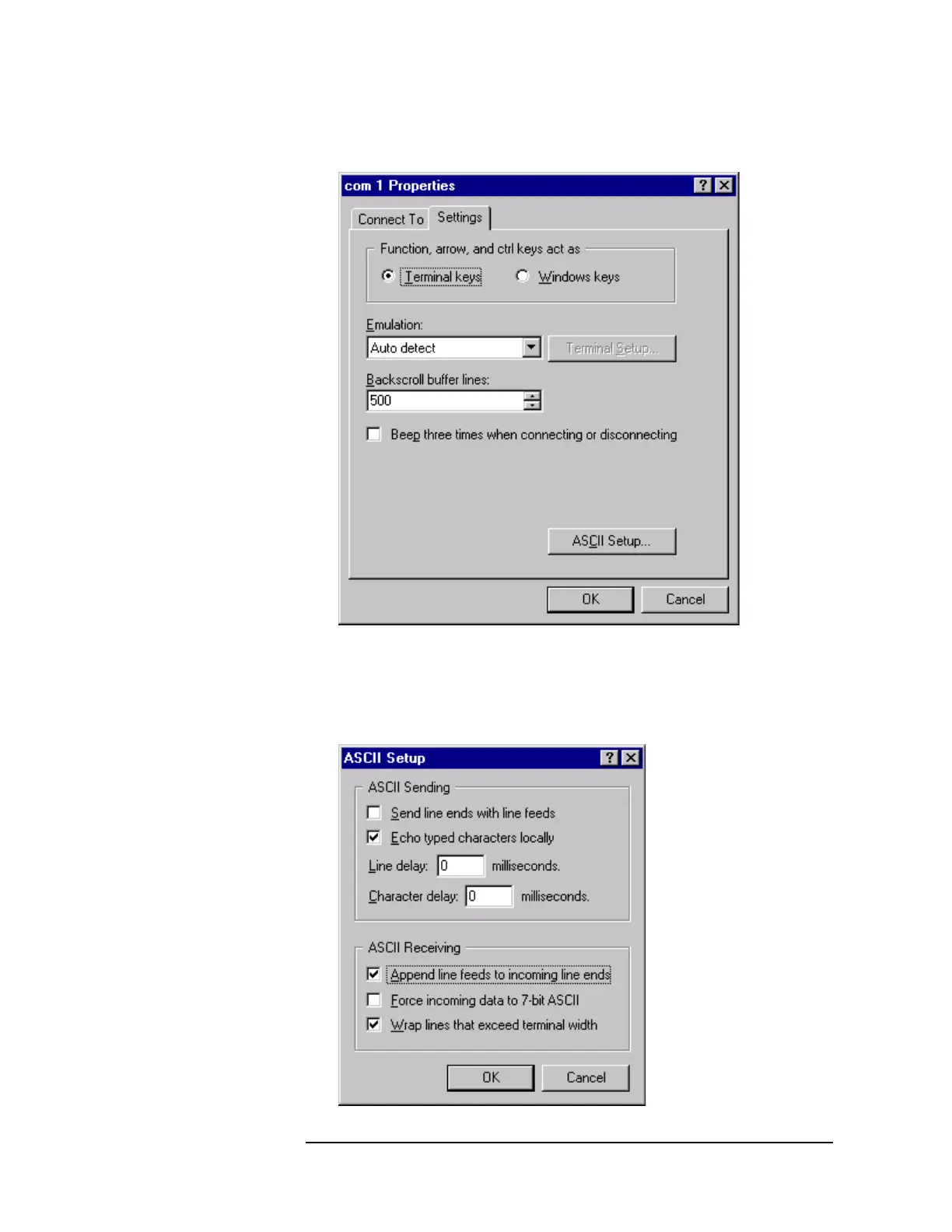 8 On the Settings tab, click ASCII Setup