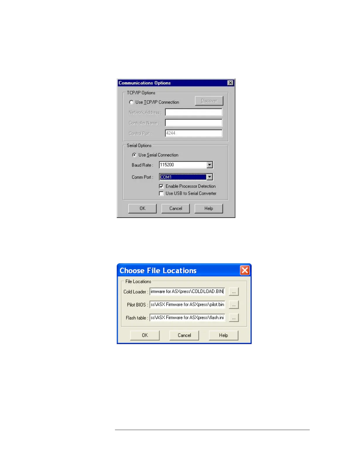 Figure 4-27 “Communications Options Window”