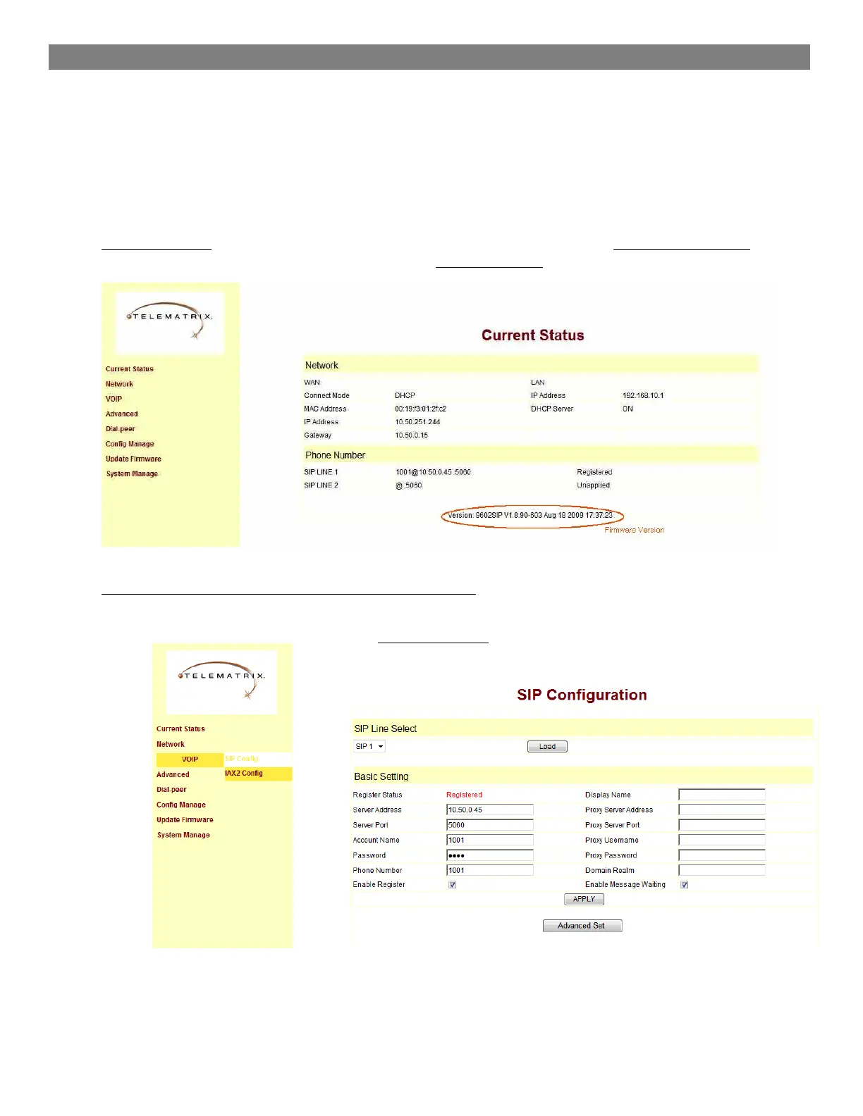 Our example SIP phone is programmed as extension 1001. The firmware version of the phone is circled in
