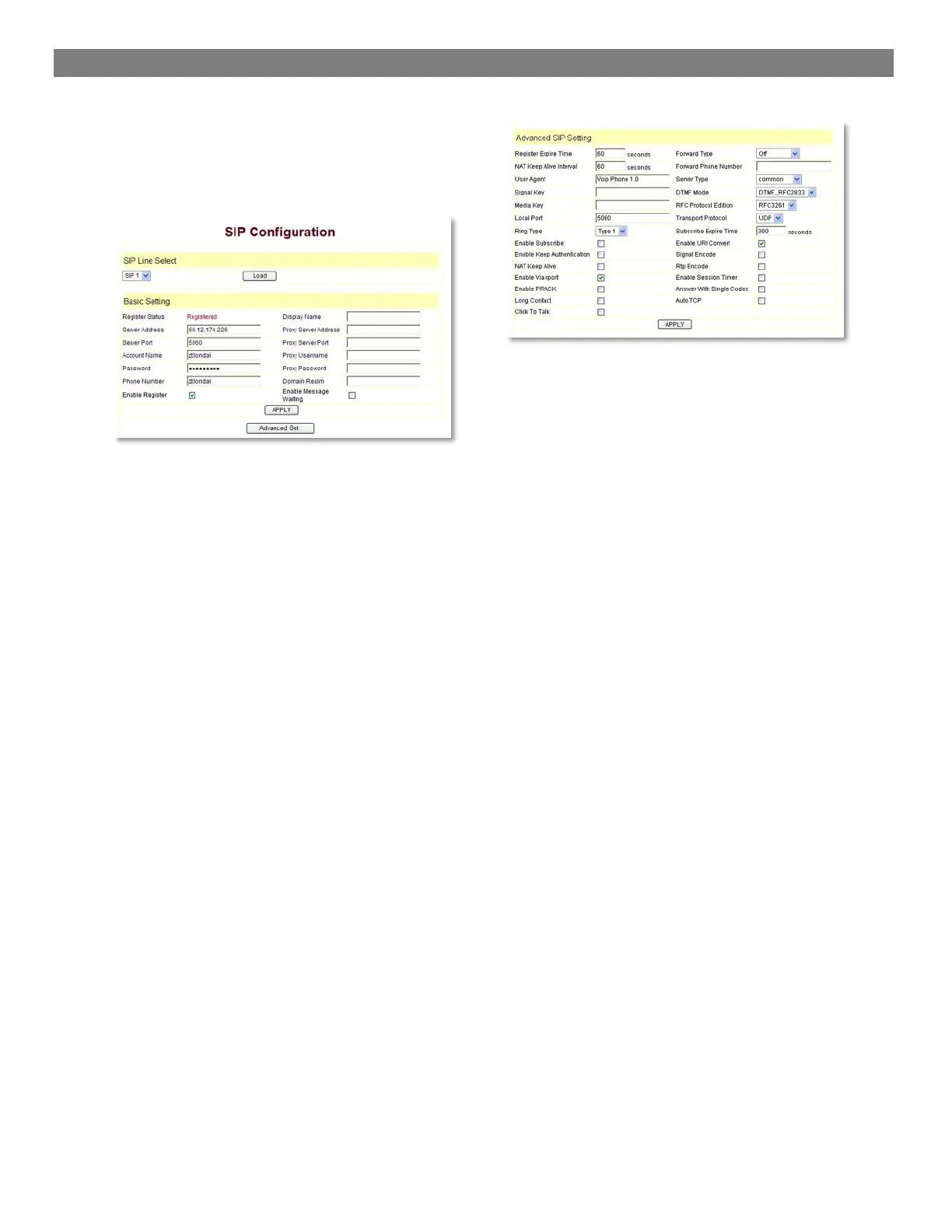 Proxy Server Addr: IP address of proxy SIP server (SIP