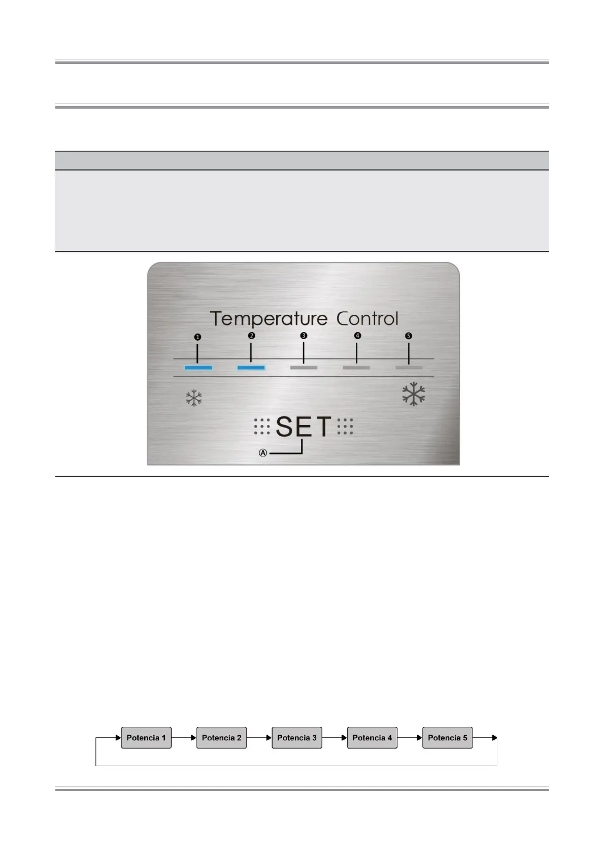 La potencia se puede ajustar a: (La temperatura ajustada se reducirá en 1°C y se puede ajustar de forma cir-