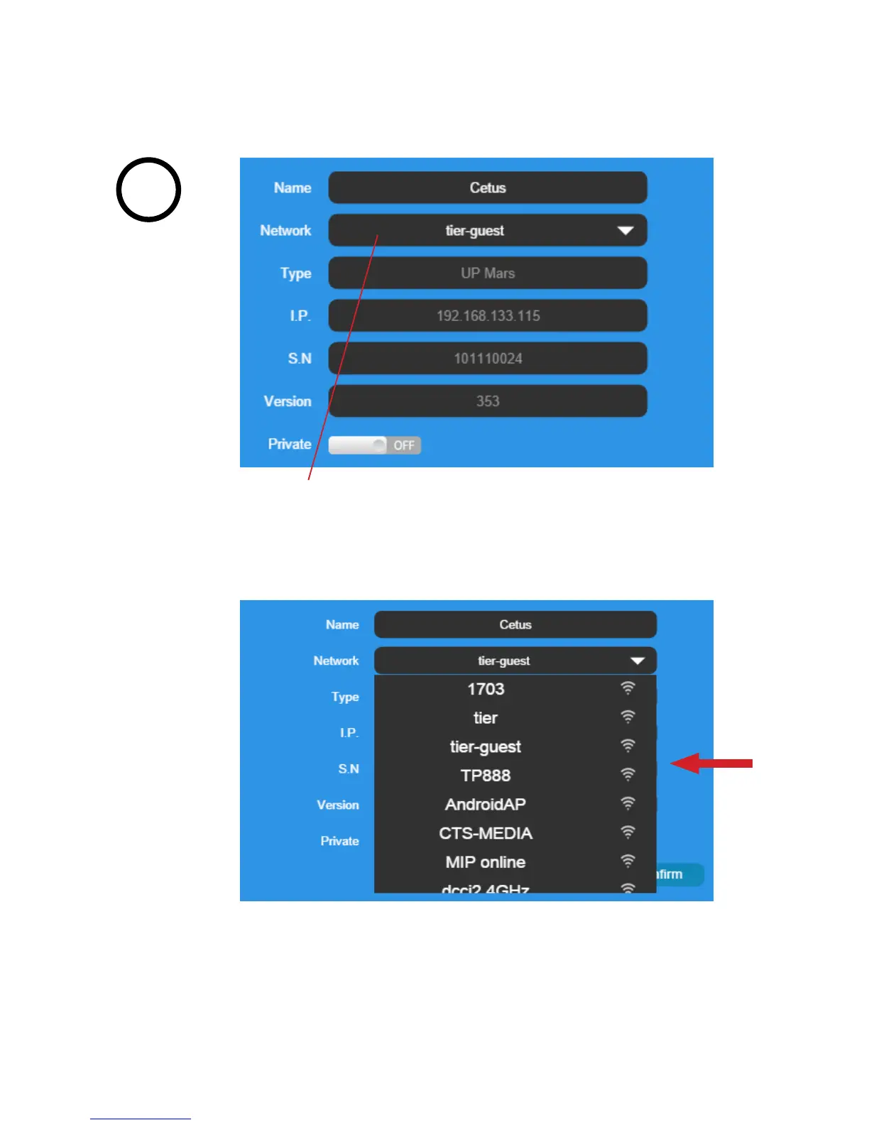 Click the dropdown menu to choose an available network.