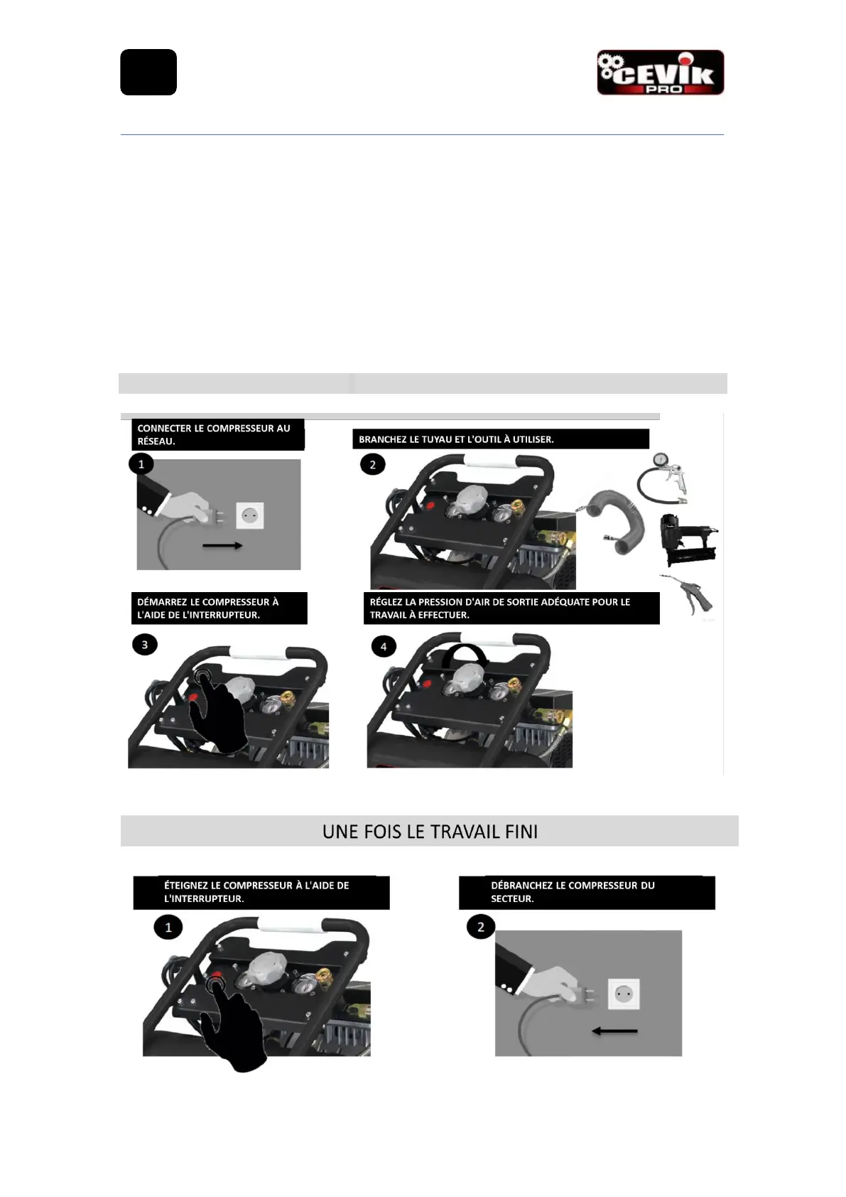 Le compresseur est équipé d'un câble secteur avec une prise de terre. Celui-ci peut être connecté