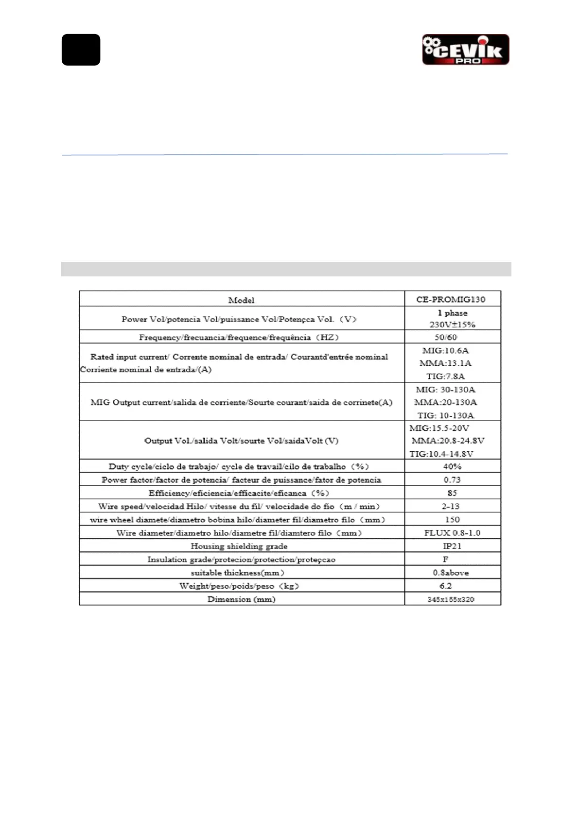 (*) Factor de marcha para un ciclo de 10 minutos (UNE EN 60974). Por ejemplo, un factor de marcha del