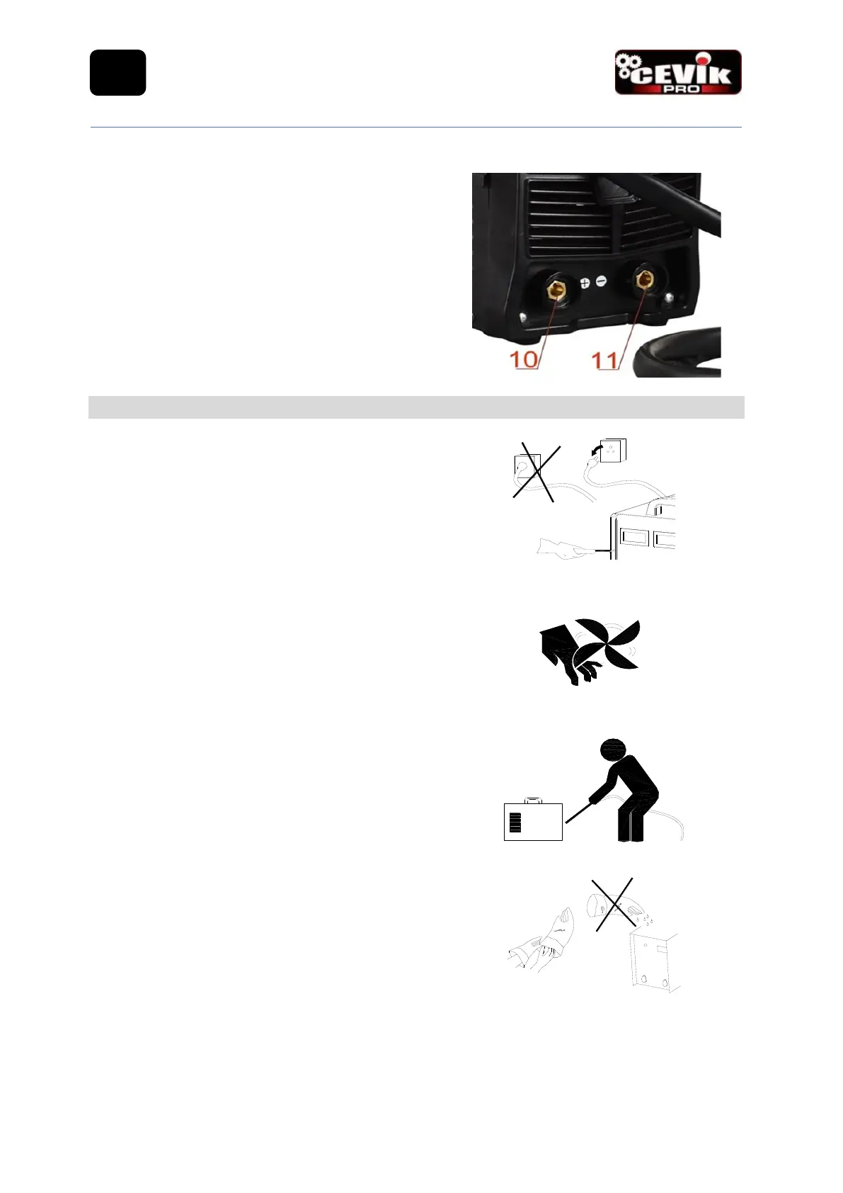 9.4.2 Connect Earth Clamp (22) to the work piece. Contact