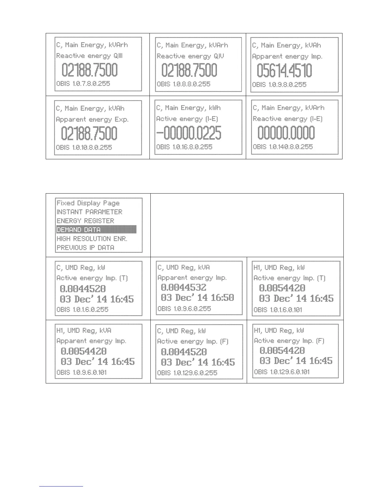 Use the Up/Down buttons to scroll to the Demand Data page. The
