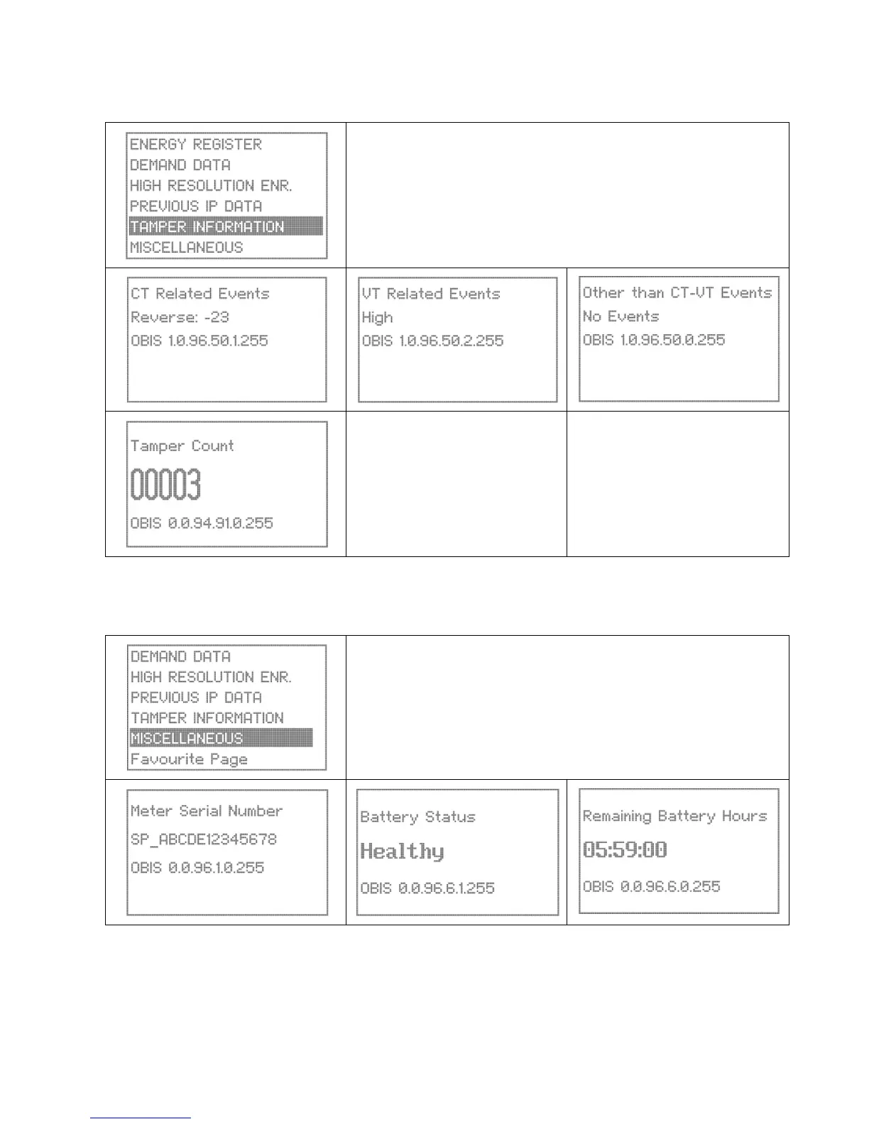 Use the Up/Down buttons to scroll to the Tamper Information page. The