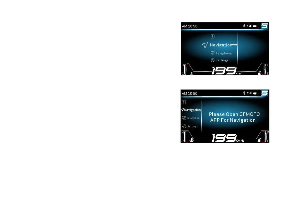 Open the navigation in CFMOTO APP, then the instrument shifts