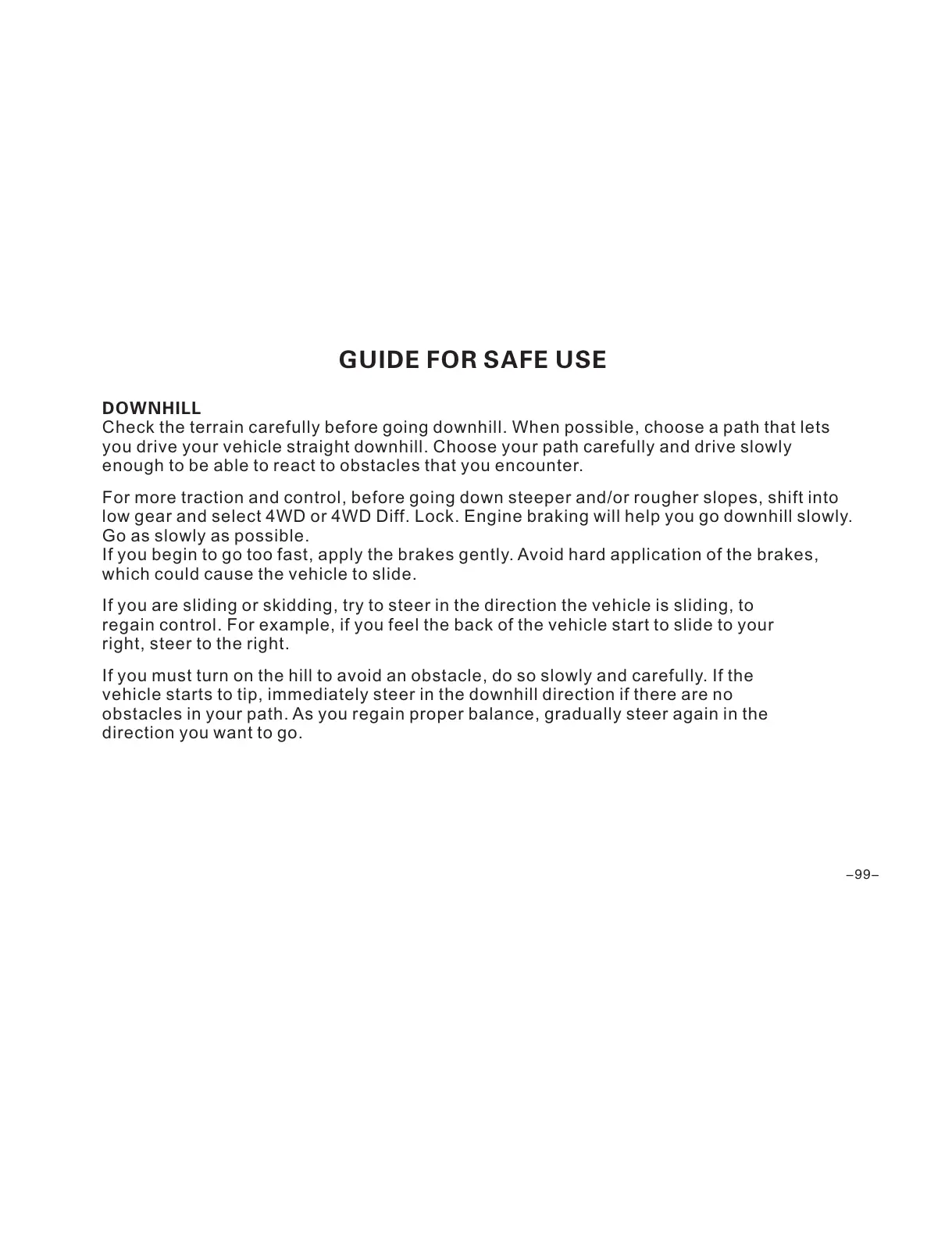 you drive your vehicle straight downhill. Choose your path carefully and drive slowly