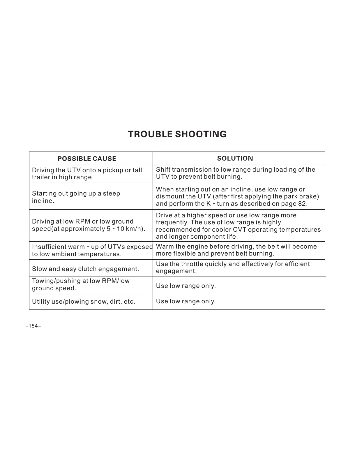 UTV to prevent belt burning.