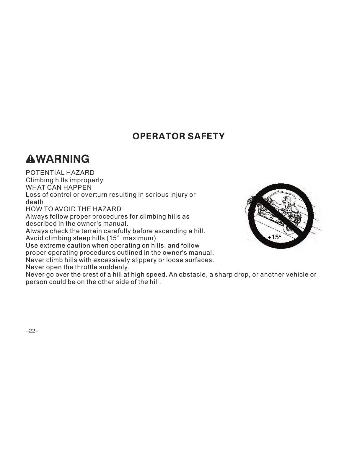 Use extreme caution when operating on hills, and follow