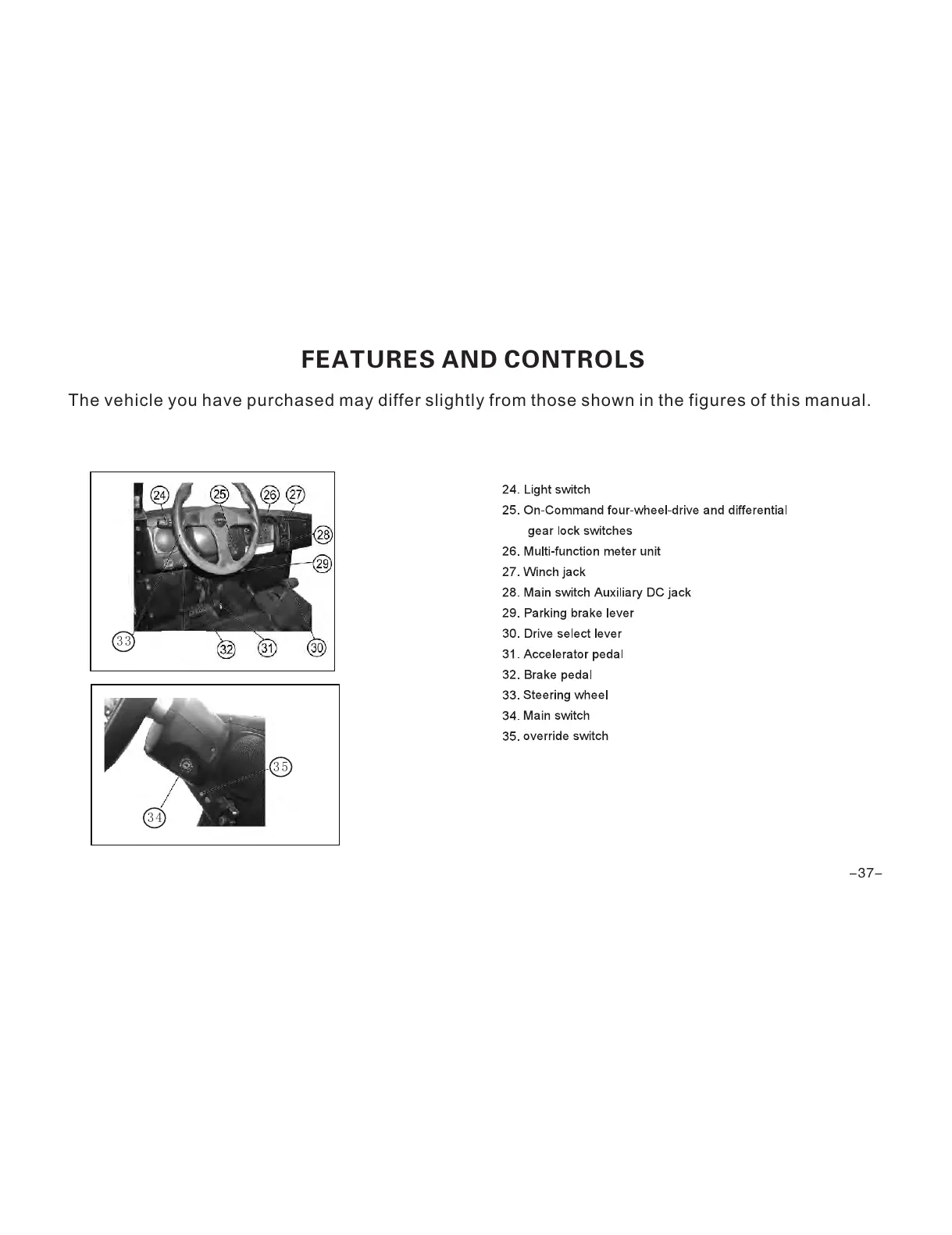 The vehicle you have purchased may differ slightly from those shown in the figures of this manual.