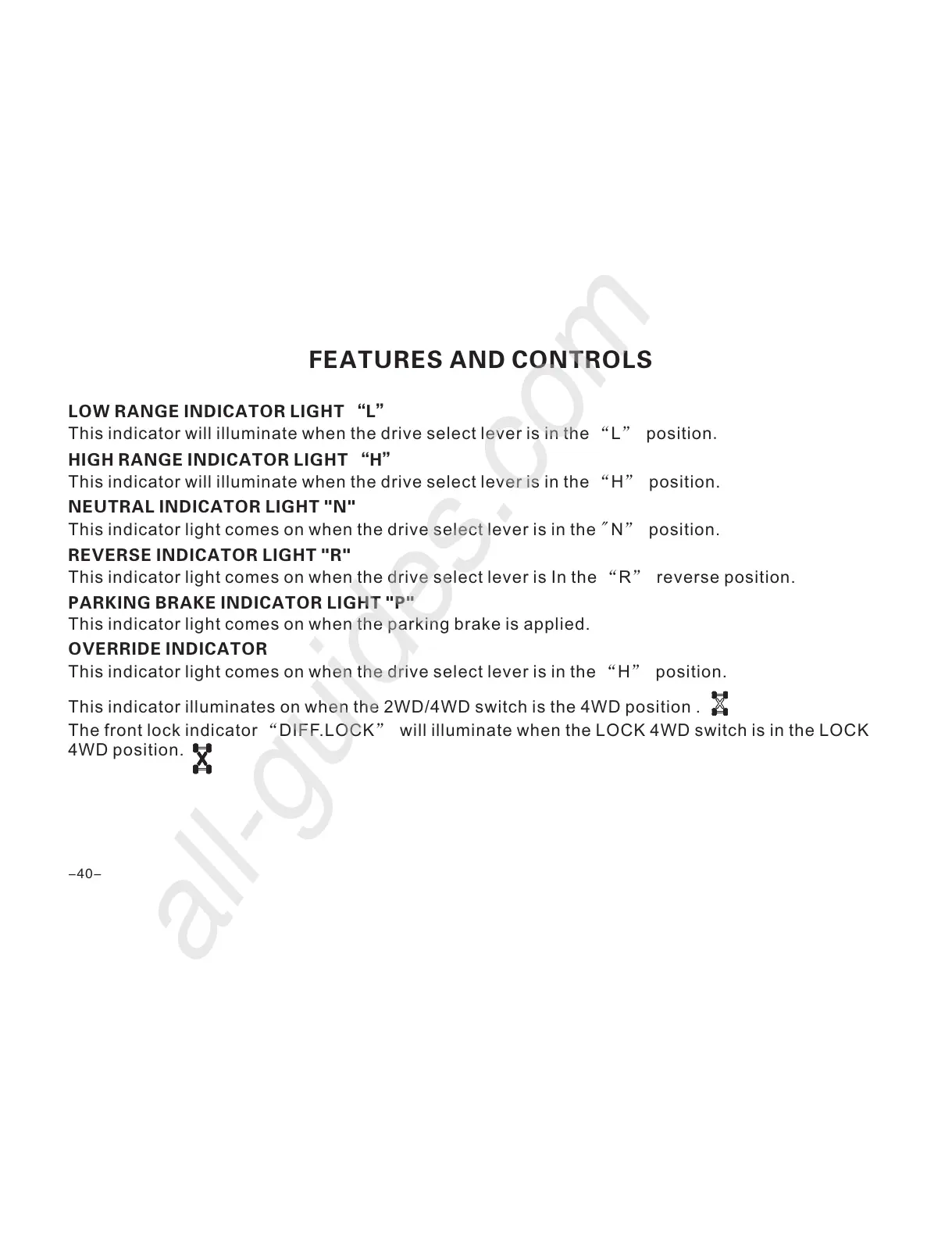 LOW RANGE INDICATOR LIGHT “L”
