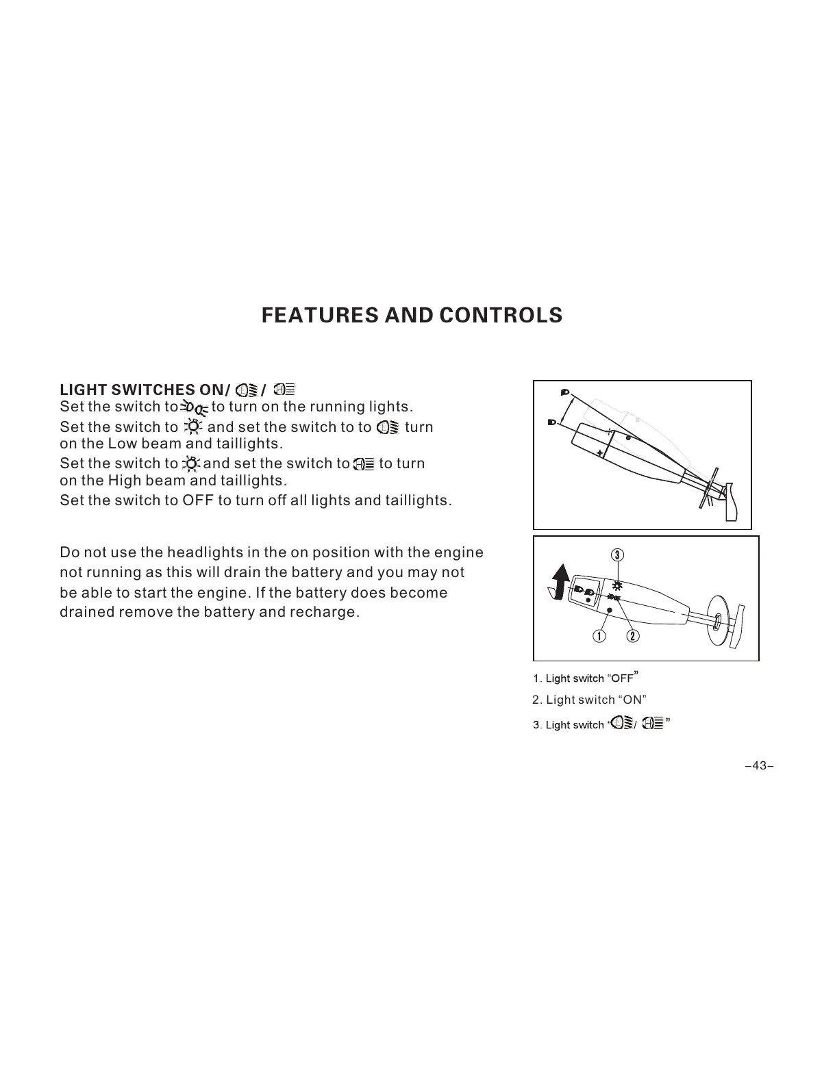 Set the switch to OFF to turn off all lights and taillights.