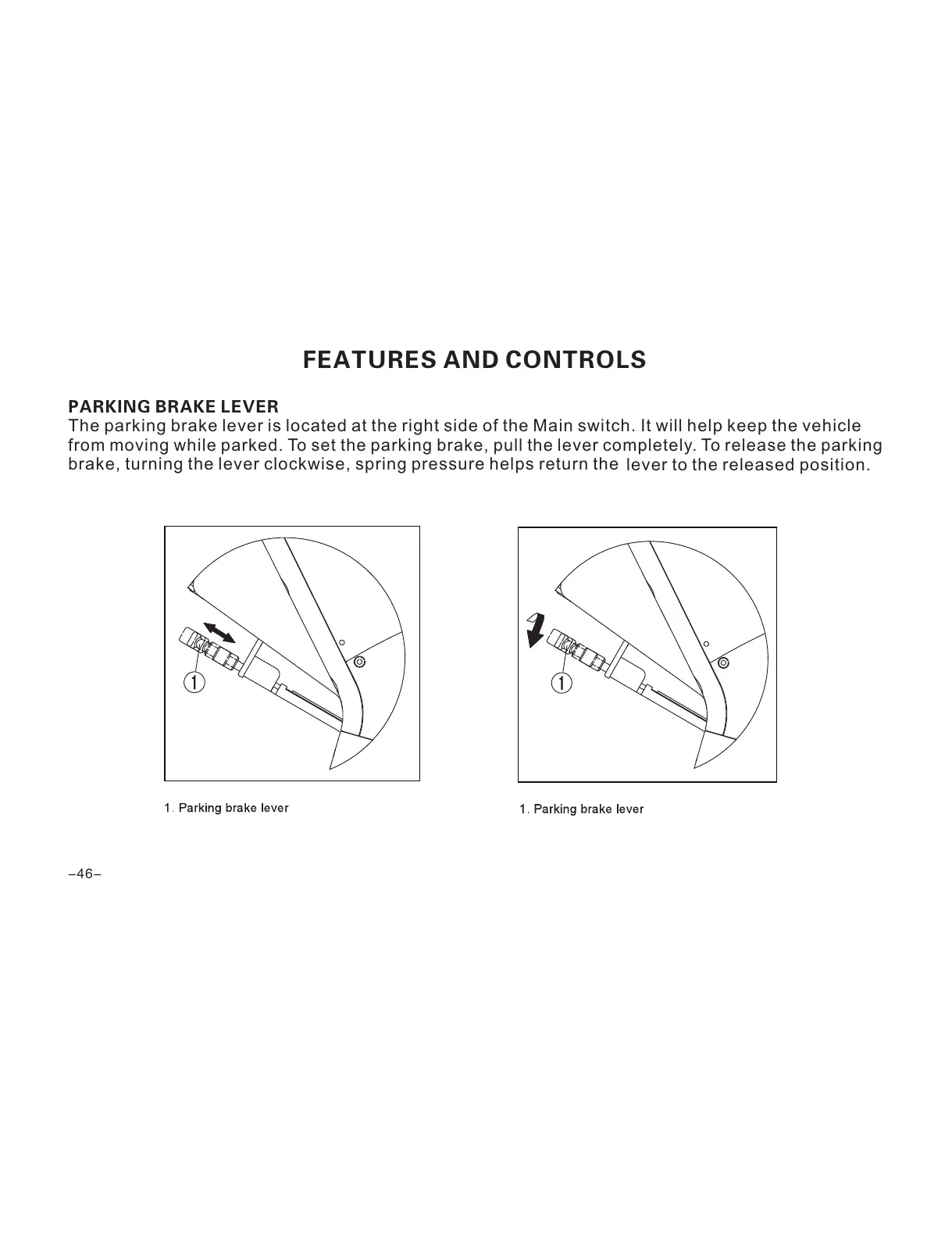 from moving while parked. To set the parking brake, pull the lever completely. To release the parking