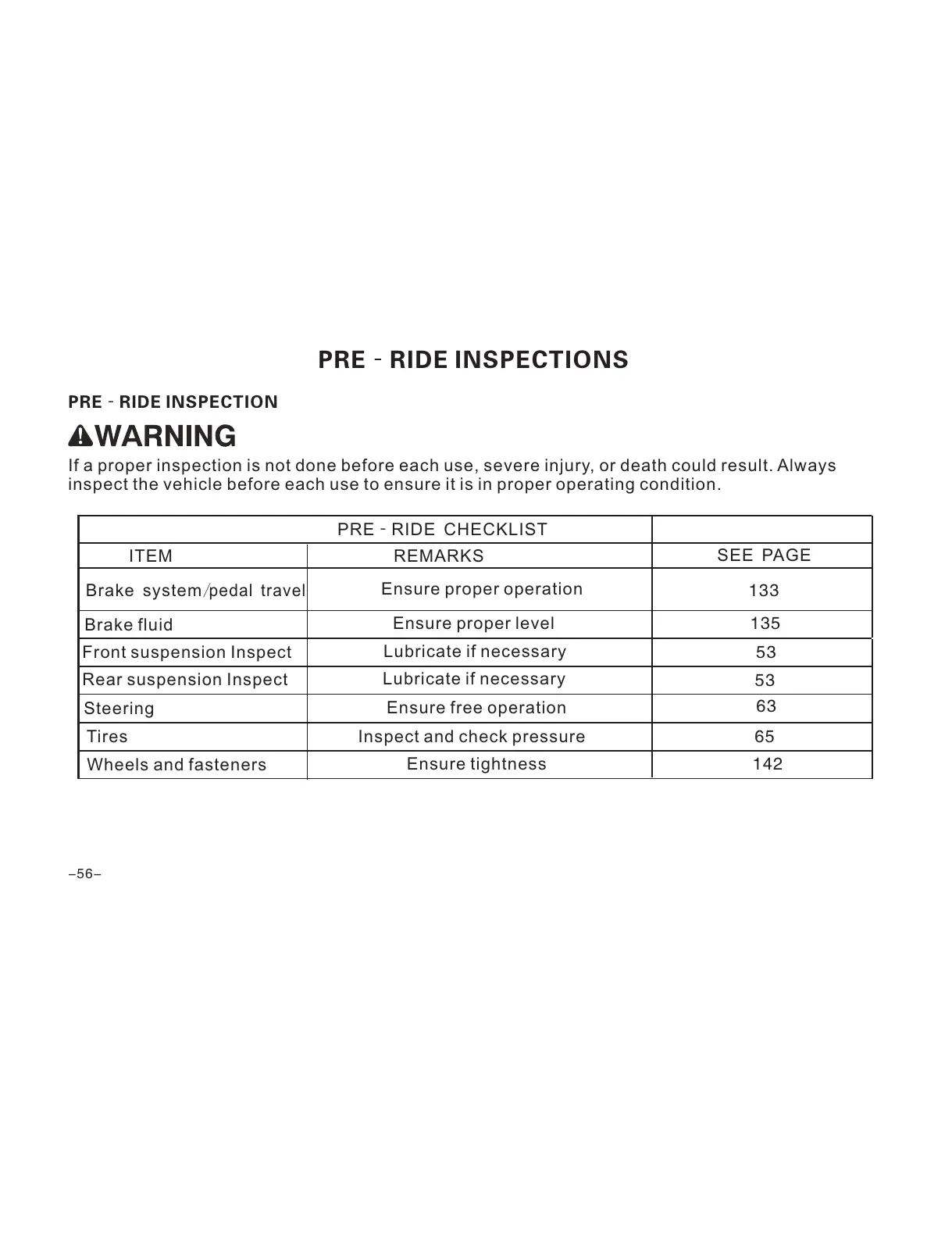 CF MOTO 600 - PRE-RIDE INSPECTIONS; PRE-RIDE CHECKLIST