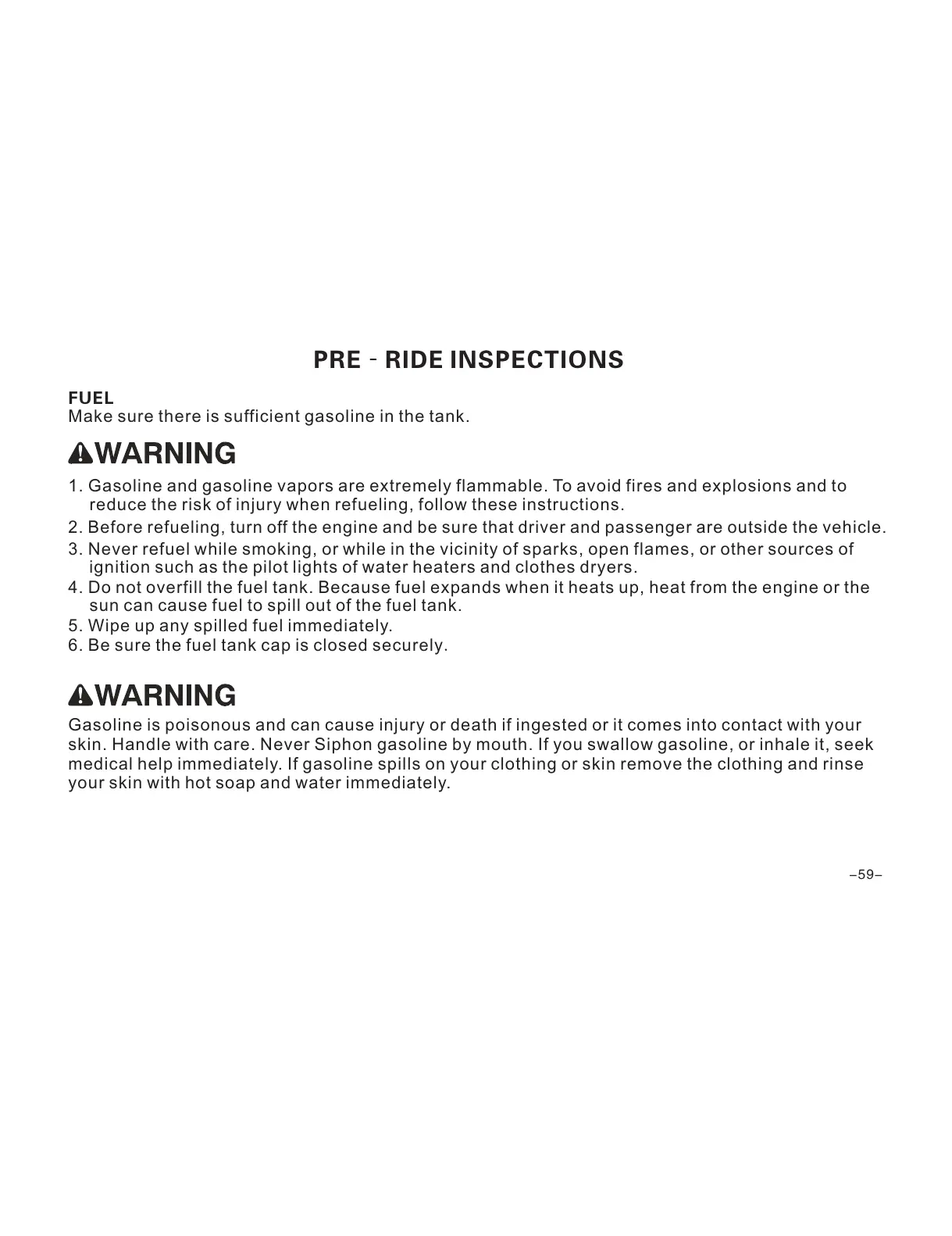 3. Never refuel while smoking, or while in the vicinity of sparks, open flames, or other sources of